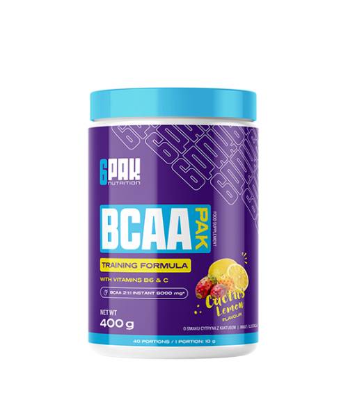 BCAA PAK je proizvod baziran na visokokvalitetnim BCAA amino kiselinama (L-leucin, L-izoleucin i L-valin) u optimalnom omjeru 2:1:1 , što garantuje odlične performanse i podršku regenerativnim procesima . Velika prednost ovog proizvoda je njegova senzacionalna rastvorljivost zahvaljujući upotrebi instantizovanog oblika aminokiselina . Formula je obogaćena setom vitamina (C, B6 i B12). Zahvaljujući takvim aditivima, tijelo će u kratkom vremenu moći nadoknaditi sve nedostatke. Vrijedi naglasiti djelovanje vitamina C na imuni sistem i snižavanje nivoa kortizolašto se prevodi u povećanu razgradnju tjelesnih tkiva (uključujući mišiće).